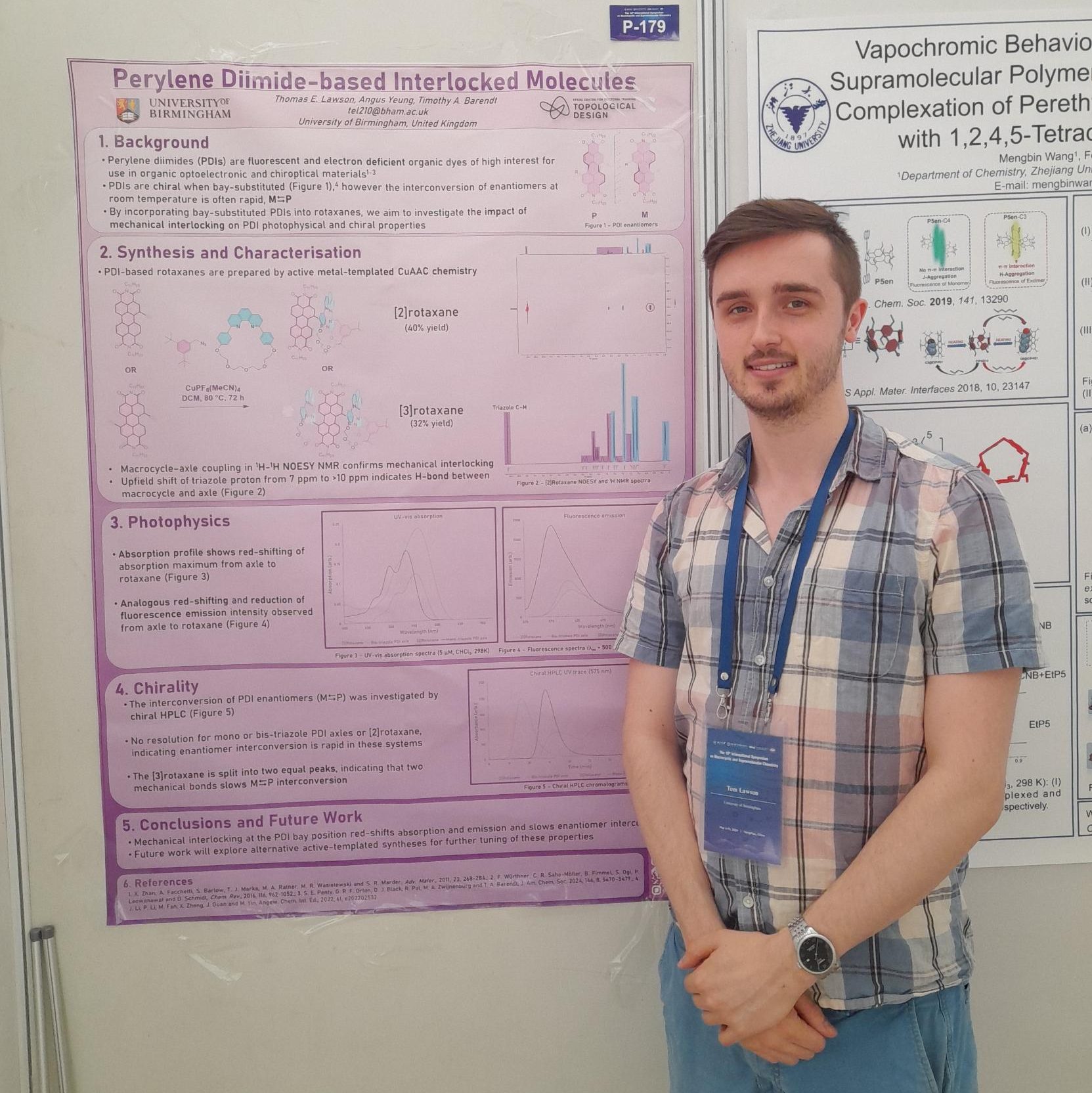 Tom travelled to China to represent the group at the International Symposium of Macrocyclic and Supramolecular Chemistry, with a poster on his recent work on chiral PDI rotaxanes