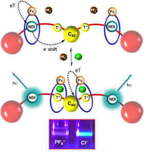 • Anion mediated photophysical behavior in a C60 fullerene [3]rotaxane shuttle