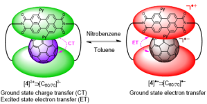 Supramolecular electron transfer to C60 fullerene when it is bound by a perylene diimide-based macrocycle nicknamed the “Green Box”.